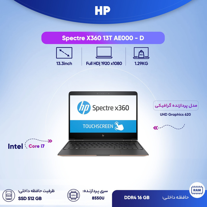لپ تاپ 13 اینچی اچ پی مدل Spectre X360 13T AE000 - D