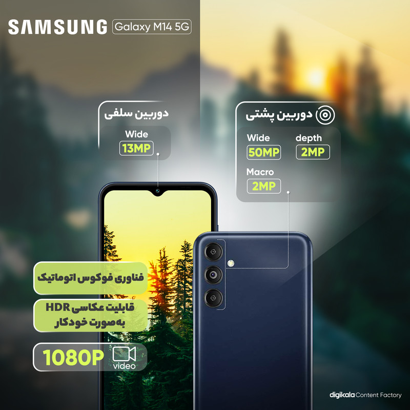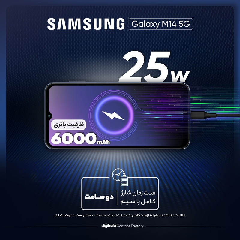 گوشی موبایل سامسونگ مدل Galaxy M14 5G دو سیم کارت ظرفیت 128 گیگابایت و رم 6 گیگابایت - اکتیو