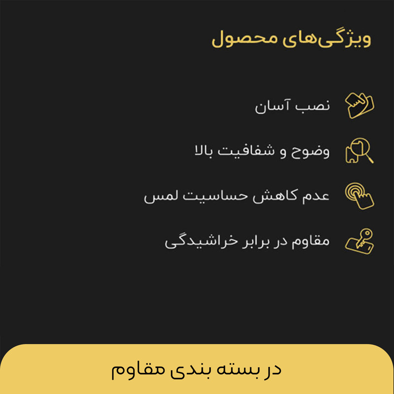 ویژگیها : قابلیت نصب آسان , 9H , جلوگیری از ایجاد خط و خش , نصب بدون حباب , جلوگیری از انعکاس نور , مقاوم در برابر خط و خش , مقاوم در برابر چربی و اثرانگشت
