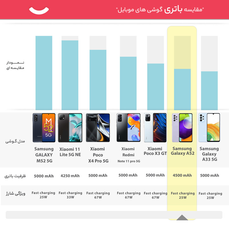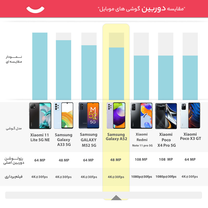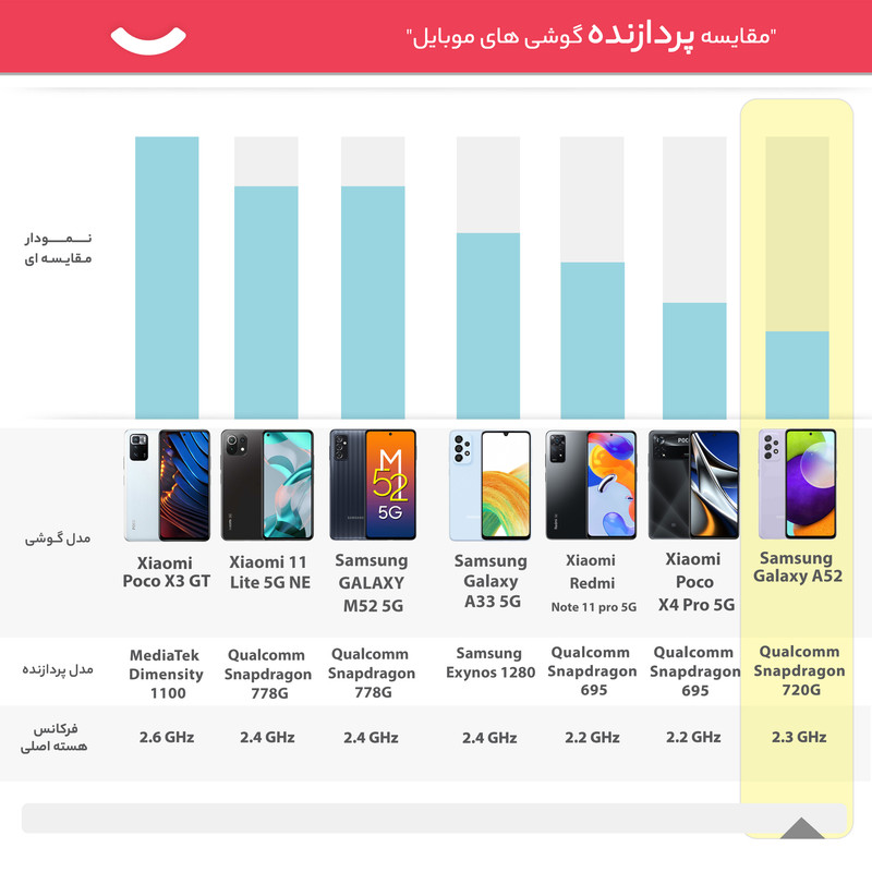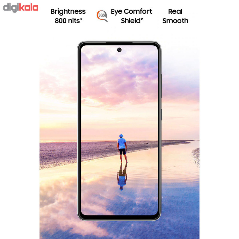 این نسخه از گوشی موبایل Galaxy A52 با رم 8 گیگابایتی و حافظه داخلی 128 گیگابایت به عنوان یکی از جدیدترین میانردههای سامسونگ روانه بازار شده است. این محصول دارای صفحهنمایش سوپر امولد است و ظاهر زیبایی دارد. سامسونگ تلاش کرده است حاشیه را در این تولید جدید خود تا حد امکان کم کند. این گوشی قاب پشتی از جنس پلاستیک دارد و قاب جلویی آن را شیشه پوشانده که البته جلوهی زیبایی به گوشی داده است. این محصول سامسونگ با نسخه 11 از سیستمعامل اندروید روانه بازار شده است تا از هر نظر گوشی مدرن بهحساب بیاید. صفحهنمایش استفادهشده در این گوشی 6.5 اینچ با رزولوشن FullHD+ است که با استفاده از فناوری Super AMOLED و پنل OLED تصاویر شفاف و بینظیری را به نمایش میگذارد. این صفحهنمایش در هر اینچ 407 پیکسل را نشان میدهد که این یعنی جزئیات و وضوح تصویر عالی است. همچنین روکش این نمایشگر لایهی محافظ Corning Gorilla Glass است که از خطوخش و ضربه جلوگیری میکند. تراشهی این محصول، Snapdragon 720G از تراشههای 8 نانومتری شرکت کوالکام است که به همراه 8 گیگابایت رم عرضه میشود. تراشهی گرافیکی Adreno 618 هم برای پخش ویدئو و بازی مناسب است. این نسخه از گوشی با حافظه 128 گیگابایتی عرضه شده است. دوربین اصلی A52 سنسور 64 مگاپیکسلی دارد و از نوع عریض (Wide) است. یک سنسور 12مگاپیکسلی و دو سنسور 5 مگاپیکسلی دیگر هم در کنار این دوربین اصلی مجموعه دوربینهای قاب پشتی A52 را تشکیل دادهاند. دوربین سلفی 32 مگاپیکسلی هم در قاب جلویی این گوشی به کار گرفته شده است. باتری 4500 میلیآمپرساعتی، پشتیبانی از فناوری شارژ سریع 25 واتی، درگاه USB Type-C و حسگر اثرانگشت در زیر قاب اصلی هم از دیگر ویژگیهای این تازهوارد است. سامسونگ در ساخت این گوشی از جدیدترین فناوریهای ساخت گوشی استفاده کرده است تا میانردهای با قابلیتهای نزدیک به یک پرچمدار خوشساخت را روانه بازار کند.